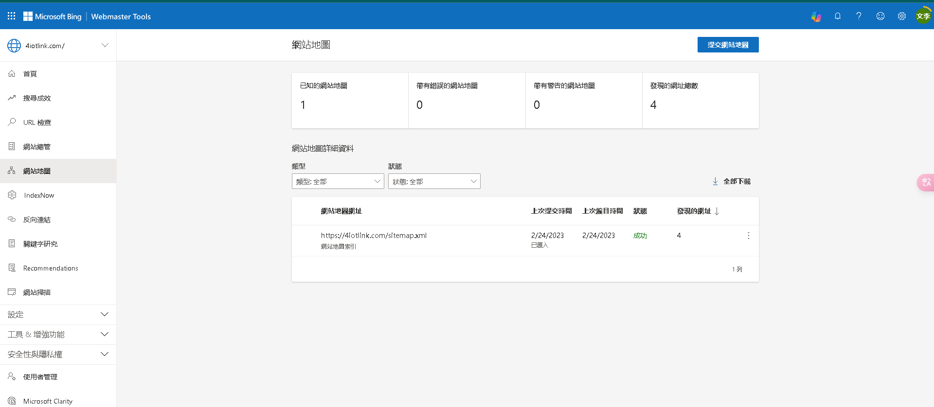 - Bing Webmaster Tools:提交網站地圖,分析Bing排名表現。