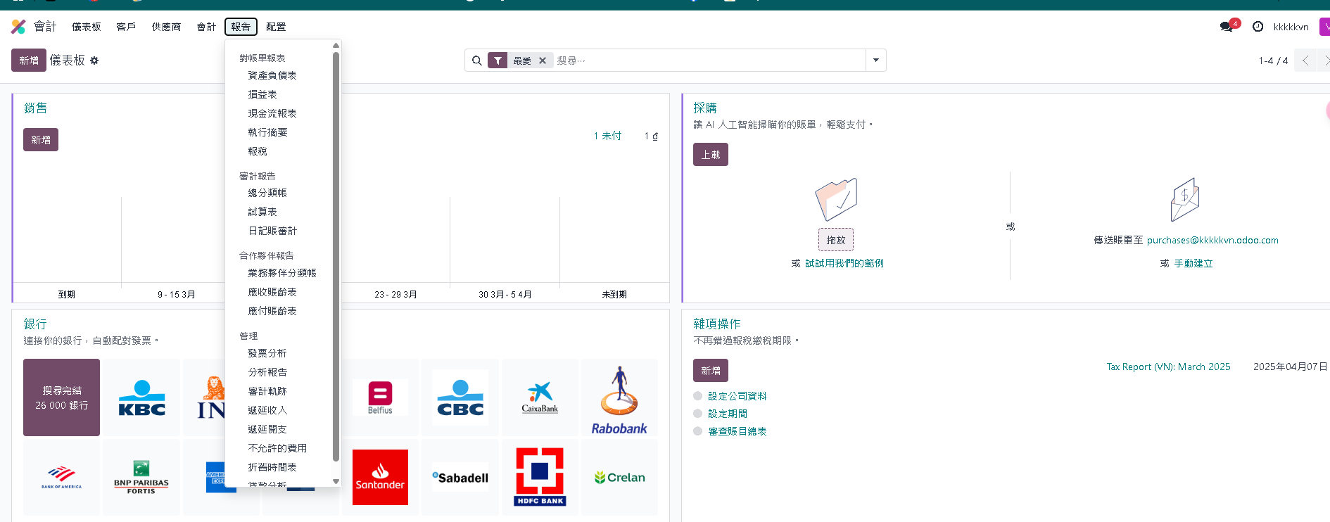 - 模組: 會計(Accounting)、預算(Budget)