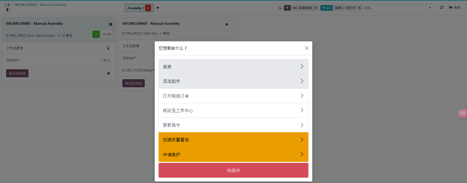 - 模組: 製造(Manufacturing)、維護(Maintenance)